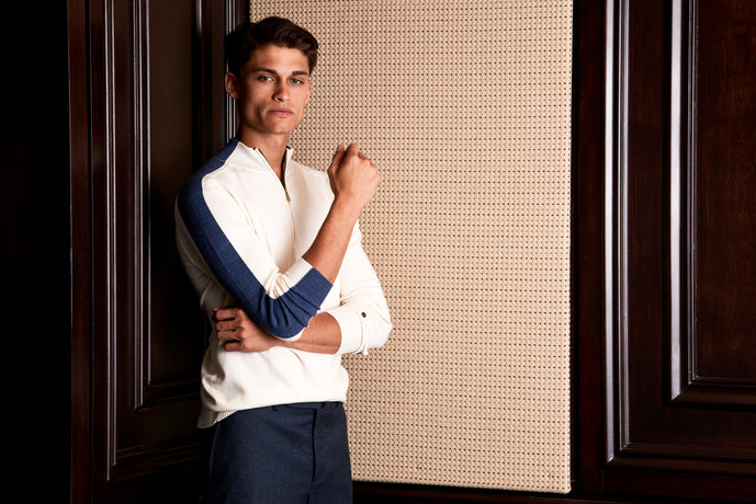 A Classic Cable Knit Crew Neck Pullover with contrast neck and sleeve trims. Made from super soft 4-ply cashmere, certified sustainable. It's extremely sumptuous and very beefy. All seams showcase beautiful traveling fully fashioned marks signaling a sweater of superior craftsmanship and the cable stitch is raised for a pronounced, luxurious appeal.